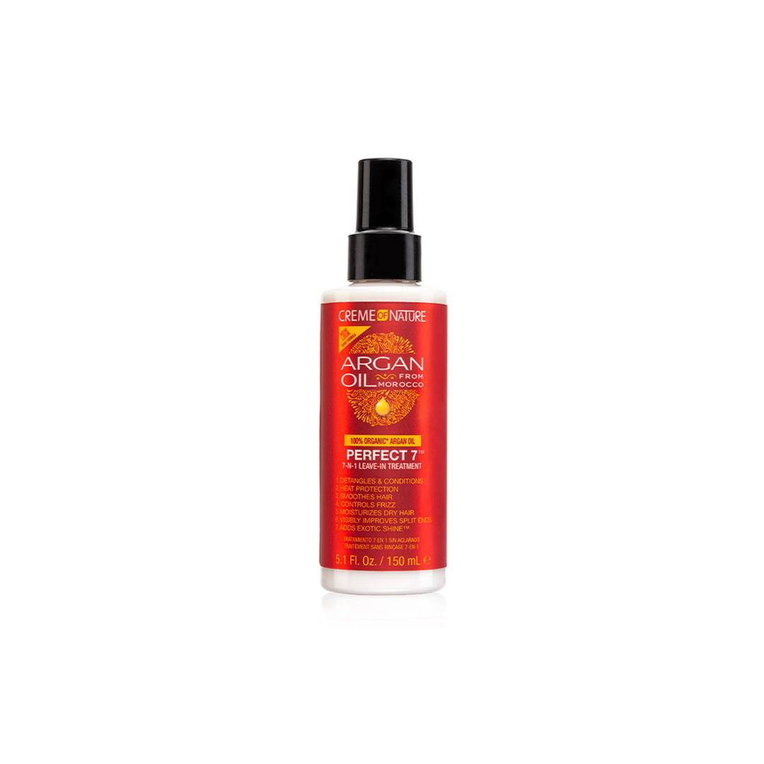 Get instant hair perfection with Creme Of Nature Argan Oil Perfect 7 Leave-In Treatment. This 7-N-1 treatment contains natural Argan Oil, Pro-Vitamin B-5, and Silk Amino Acids for weightless Exotic Shine™ and healthier, beautiful hair. Reduce the need for multiple hair products and experience 7 amazing benefits in one creamy formula. All hair textures will love this!