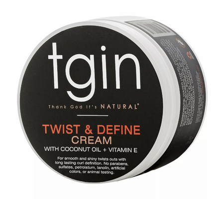 Formulated especially for natural hair. Great for braid outs and twist outs or those transitioning to natural hair. TGIN Twist & Define Cream will give your natural style a strong hold while hydrating hair and reducing frizz.