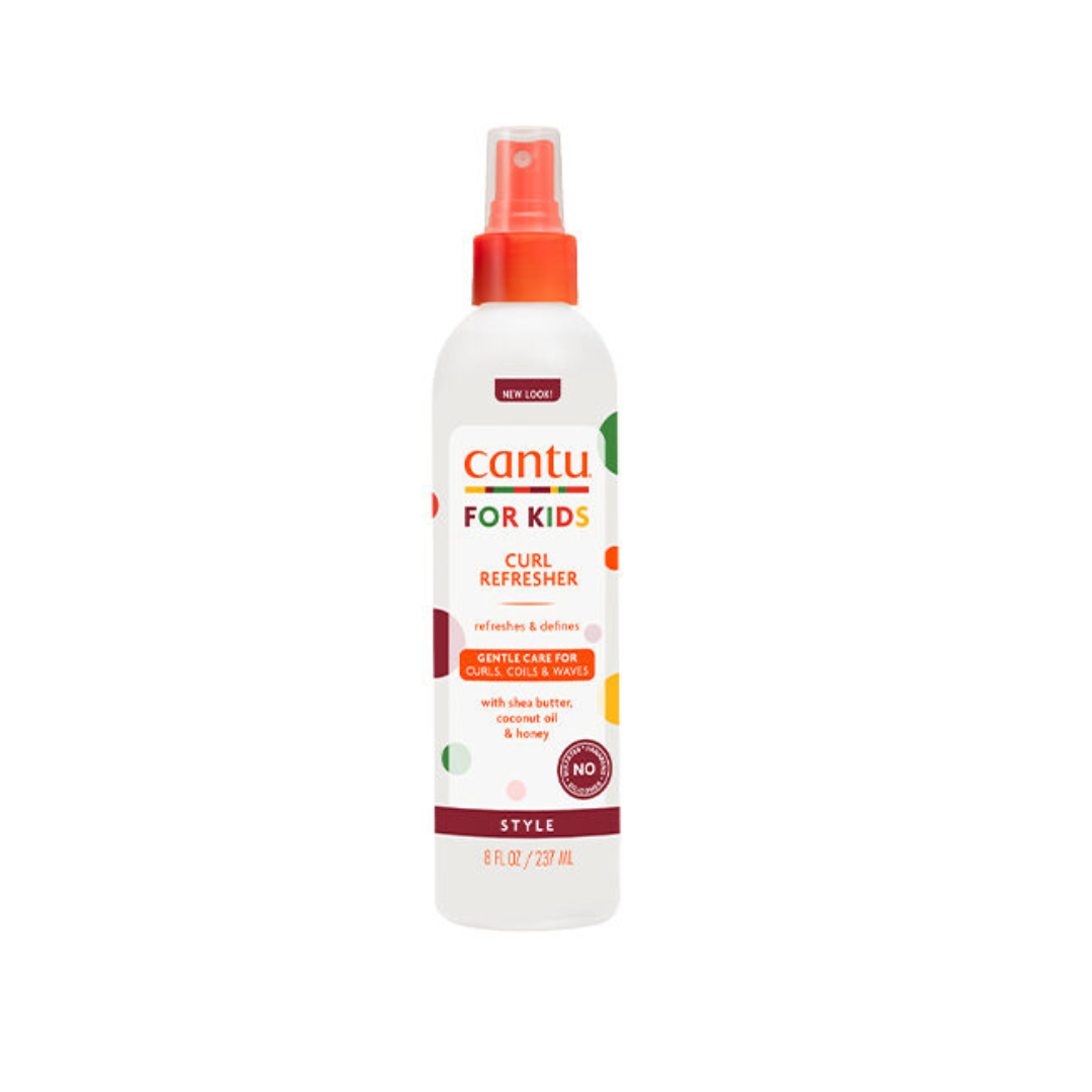 Revive your child's curls with Cantu Kids Curl Refresher. Formulated with pure Shea butter, this spray redefines, moisturizes, and reduces frizz for vibrant, vivacious curls. Perfect for extending styles and adding shine, it's a must-have for any curly kid. Formulated without harsh ingredients!